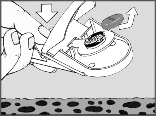 3.) Un șoarece prins în capcană poate fi îndepărtat rapid și ușor, fără a-l atinge, prin apăsarea clapetei. SuperCat este apoi imediat gata de utilizare din nou.