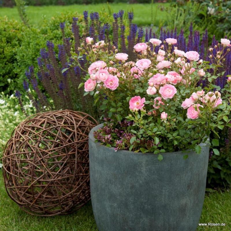 Acest nou venit în grupul trandafirilor pitici, cu farmecul unui trandafir romantic tandru, are o creștere frumos compactă și flori abundente în inflorescențe multiple. Este complet rezistent la boli și înflorește continuu.