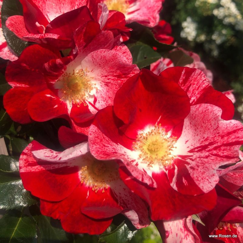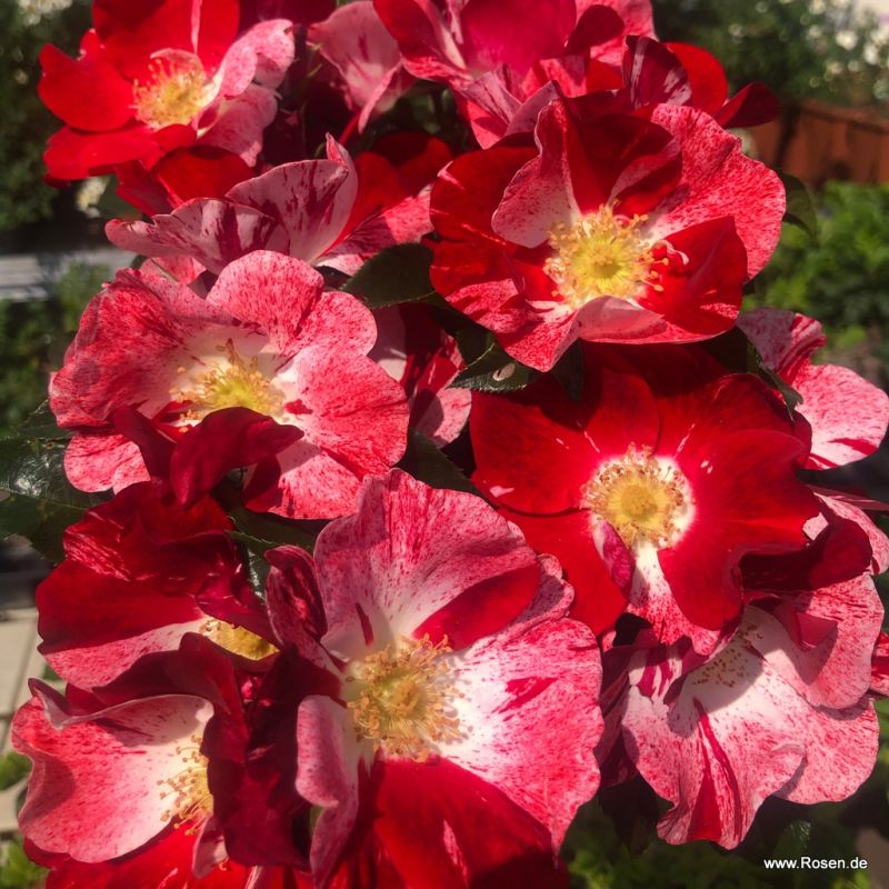 Rosetul ´SIMSALABIM´ ne poartă într-o lume magică cu florile sale frumoase într-o combinație unică de culori pe petale alb-crem. Marginile petalelor sunt colorate în nuanțe contrastante de roșu cireș. Umplutura neregulată unică este roz deschis spre nuanțe de roșu. Centrul florii este format din pistil galben auriu. Florile de 6-7 cm sunt completate de frunze ovale verde închis, lucioase, cu margini fin dințate.